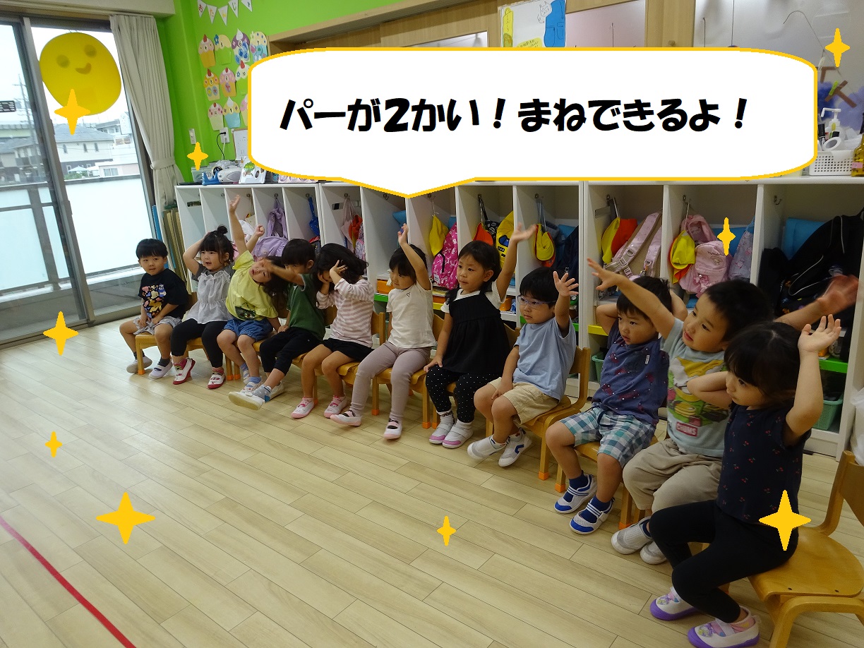 また、「右と左」「グーチョキパー」も少しずつ覚えています。