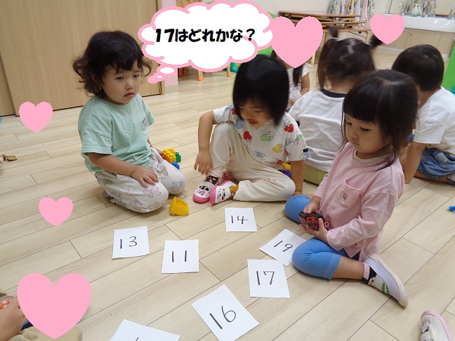 少しずつ数字に親しみを持ちながら、遊びの中で楽しく数の概念も深めていけたらと思います!