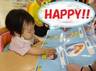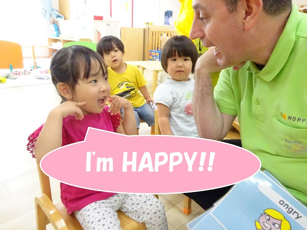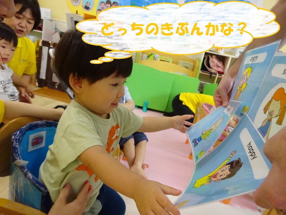 シリウス組(2歳児)さんは「Happy」「Angry」など言葉で気持ちを伝えています。