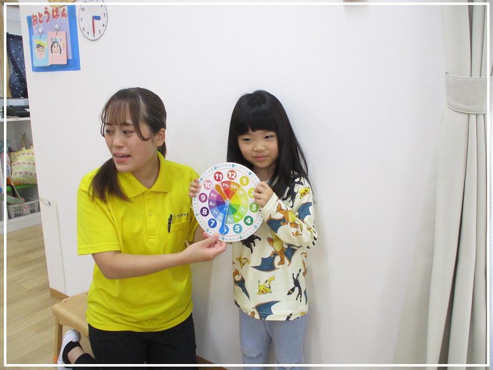 ベガ組(4歳児)は時計の見方を学んでいます。