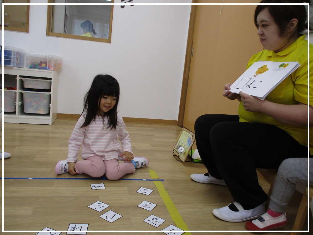 カペラ組(3歳児)は文字の学習をしていました。