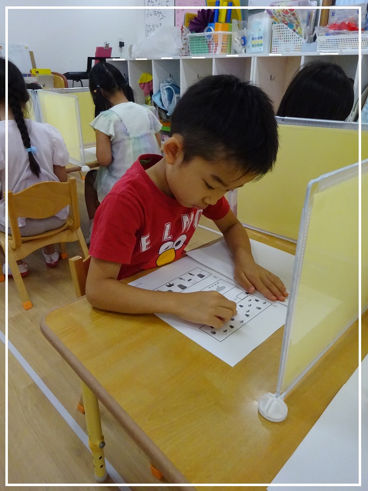 シリウス組(5歳児)はこの日、プリントに取り組んでいました。