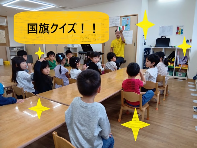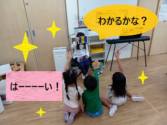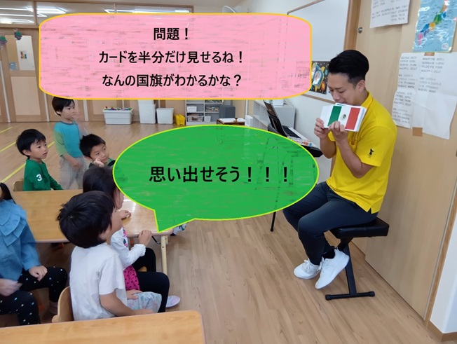フラッシュカードのように国旗を子どもたちが見て、次々に覚えていきます。