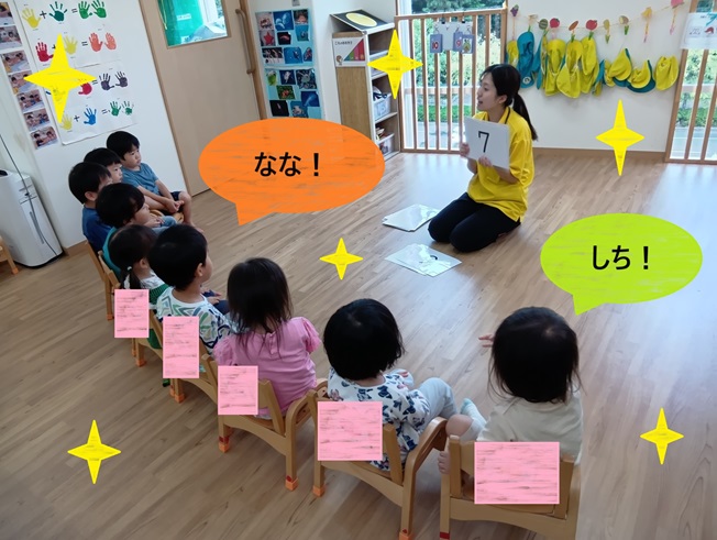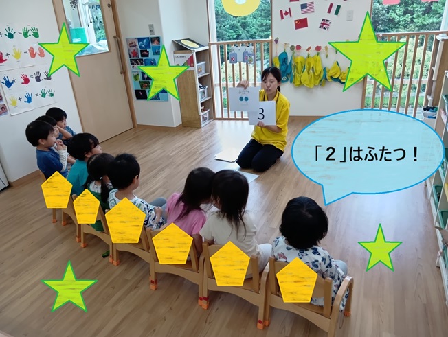 また、数字には一つの数え方だけではなく「ひとつ、ふたつ、みっつ…」のように別の数え方があることも伝えていきます。