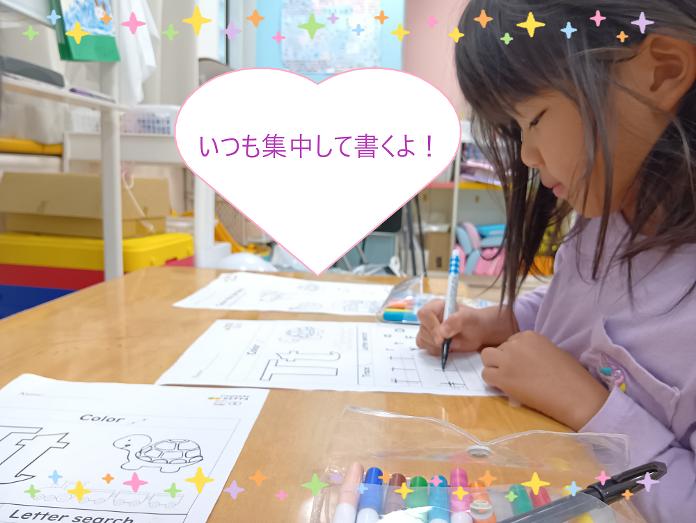 楽しみながらアルファベットを覚えて自分の名前をローマ字で書けるようになってきました💕