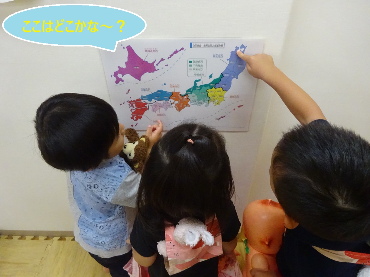 お部屋に貼ってある日本地図にも最近は興味があるようです。