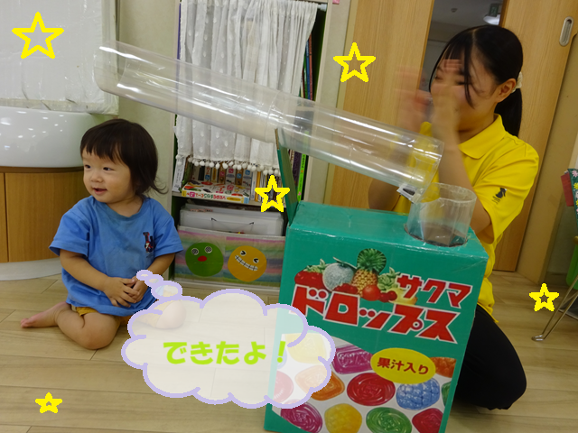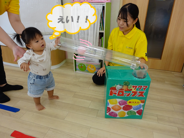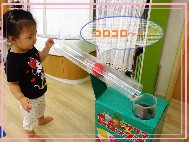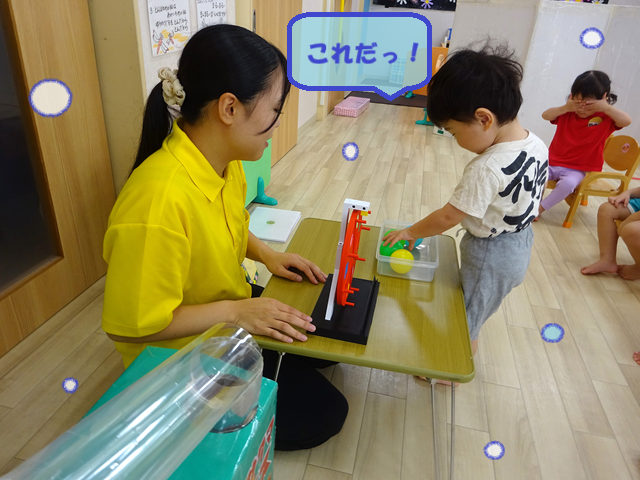 ボールを入れる際には、「ポトン」という音が鳴るのか気にしながら、慎重にそっと入れる子どもたちの様子が見られます!