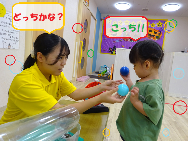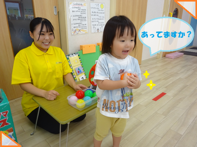 ベガ組さんからは選んだボールを持って「あってまっかあ~!」(あってますか)とみんなに聞いています💡