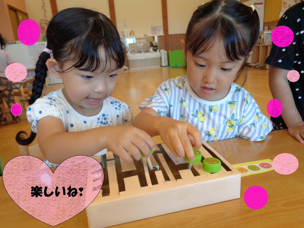 カペラ組の知育timeでは、子どもたちの興味や関心に合わせた「手作り知育おもちゃ」を使い、楽しい雰囲気の中で取り組んでいます♪
