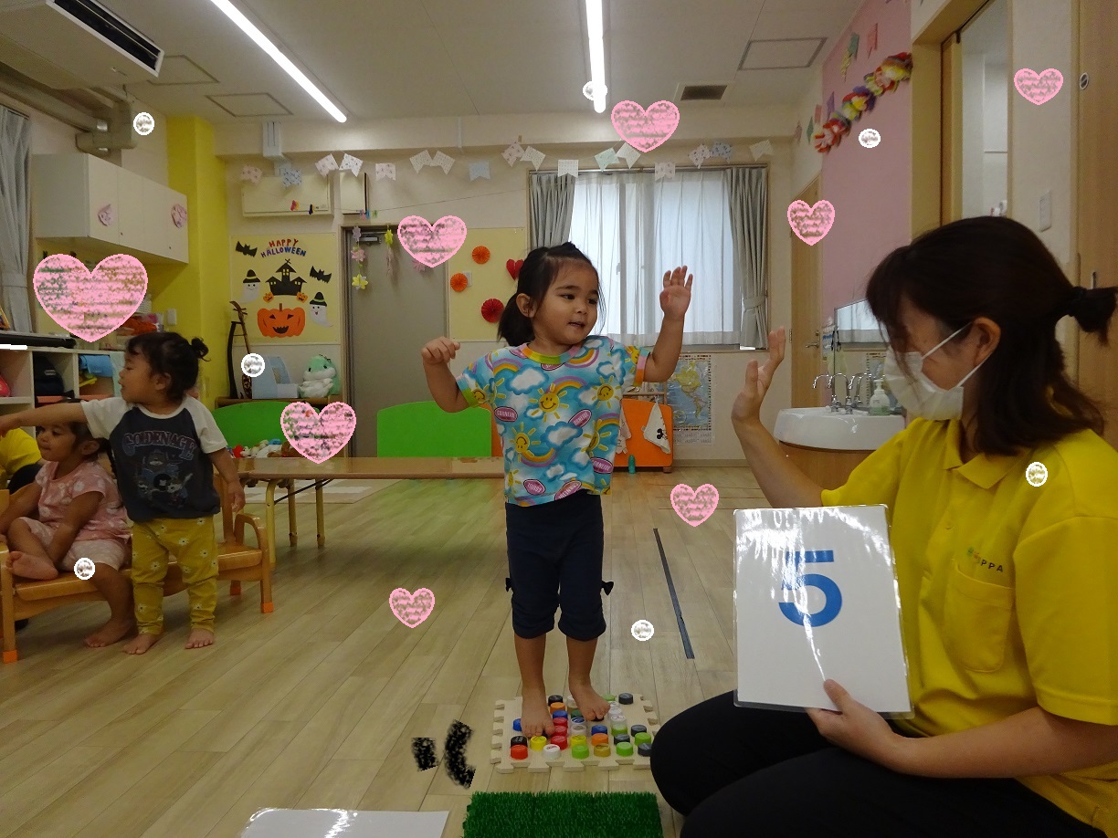 ジャンプしていると段々楽しくなってきて指定された回数よりも多く飛んでしまう事もありますが、それも楽しみながら知育timeに参加出来ているという事ですよね😊