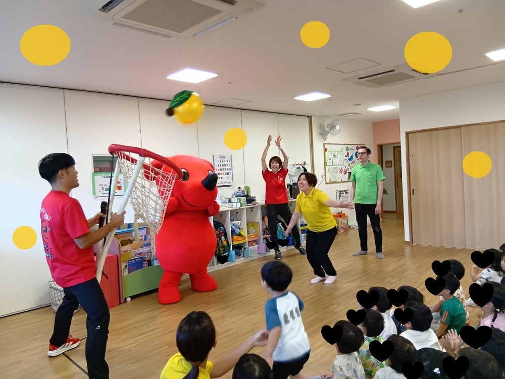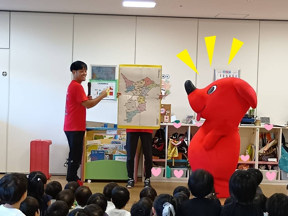 真っ赤な身体と愛らしいフォルムのチーバくんに、園児たちは「すごい!本物だ!」と大興奮✨