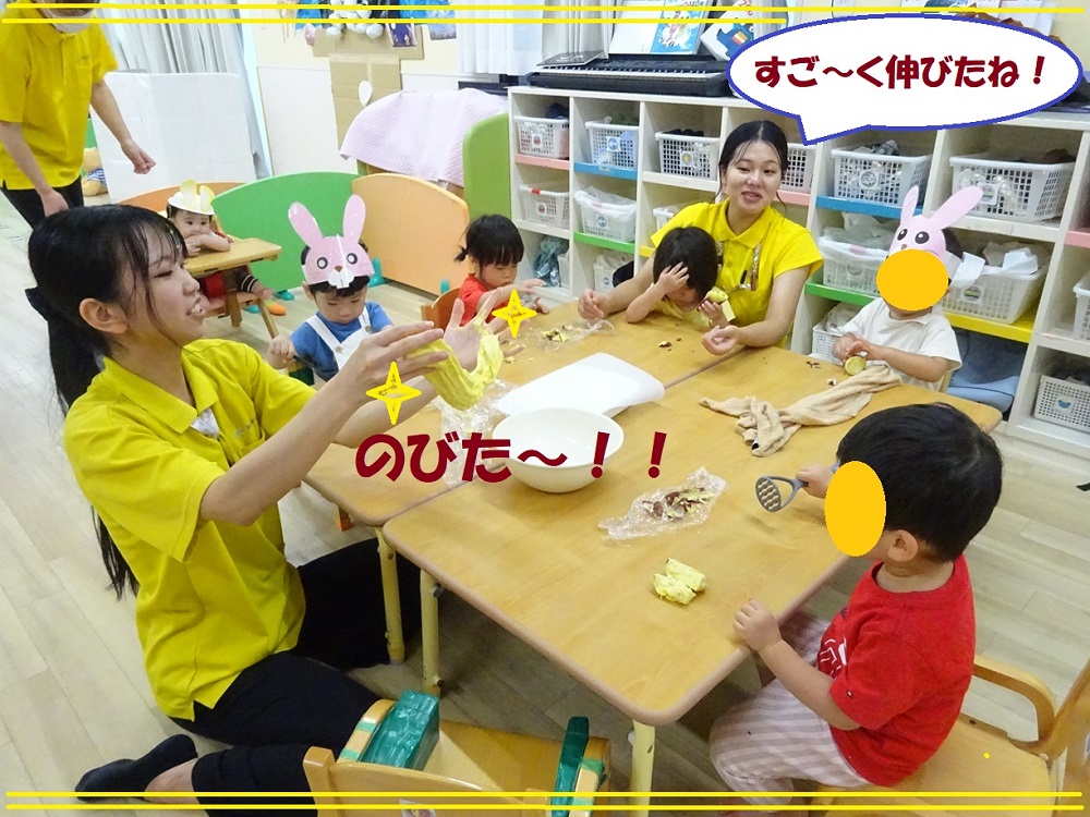 シリウスさん(2歳児)にはつぶすお手伝いもお願いしました!