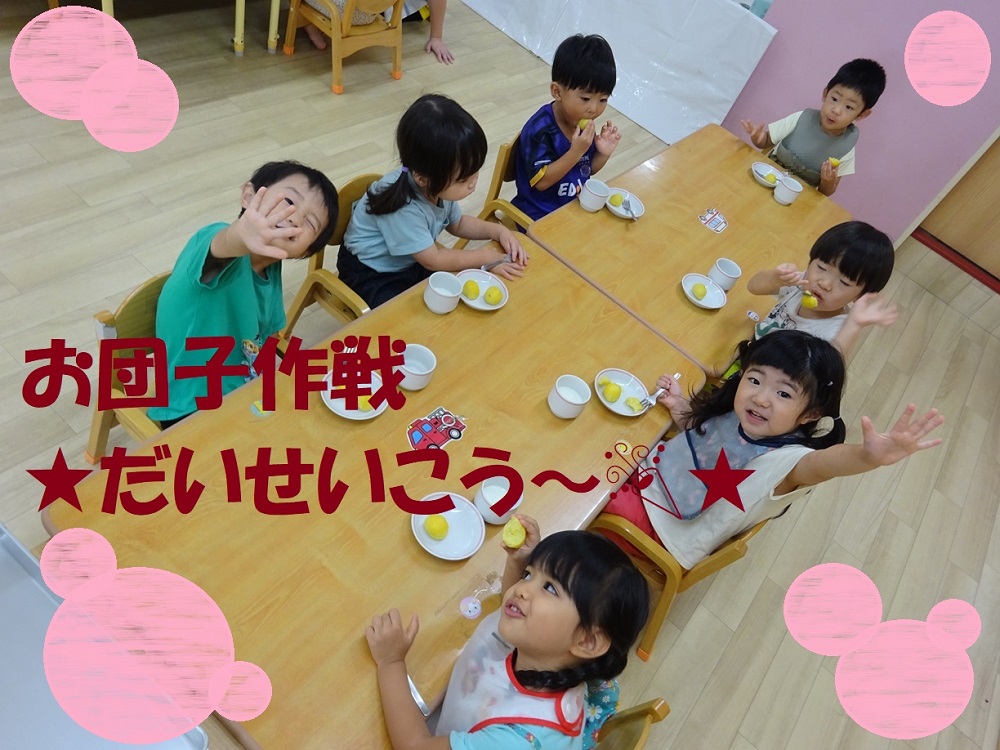 おやつの時間になると自分たちが作ったお団子を見てワクワク💗
