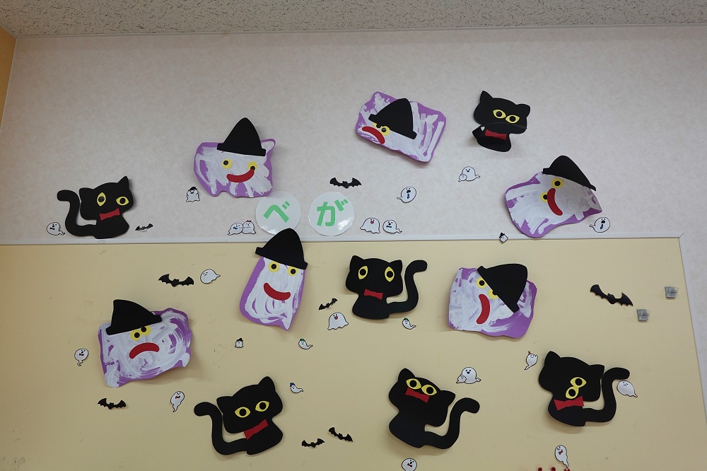 10月も各クラス、季節と年齢に合わせた製作で壁面を飾ってくれました。
