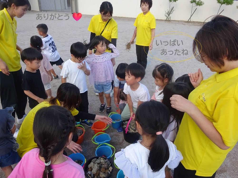 でもみんなの大好きな園庭奥の築山から石がコロコロ出てきてしまって危ないので運動会前にみんなで石拾いもしましたよ😊