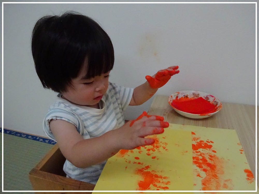 両手に思いきり絵の具を付けて様々な形作ることを楽しんでいました🎶