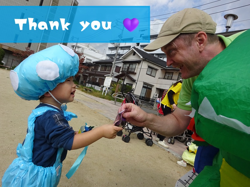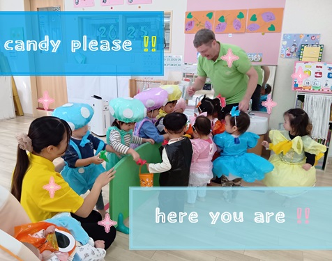 「キャンディー・プリーズ!」とお菓子をもらう練習を行いました!