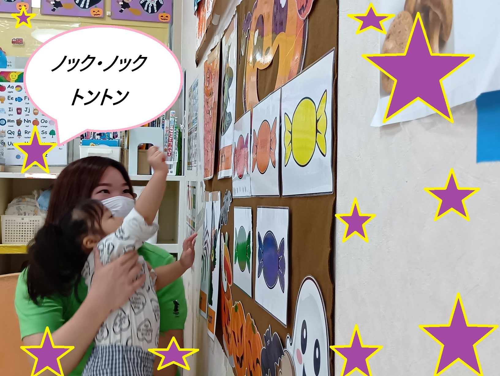 船橋駅園では園解放デーに合わせてハロウィンEnglish timeを行いました。