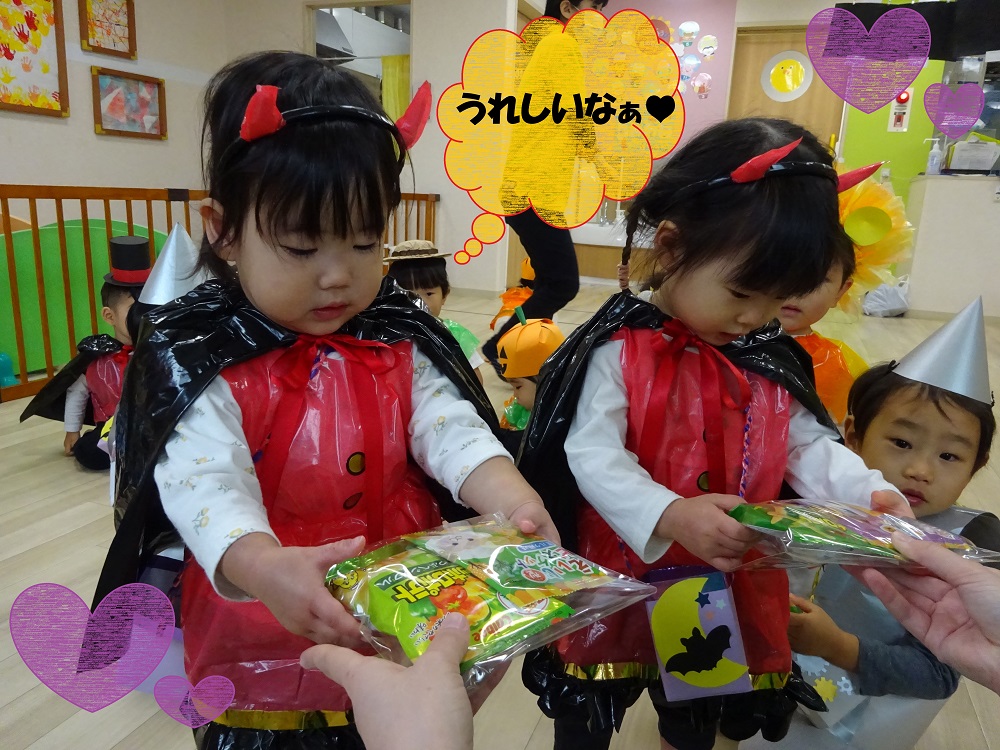 帰園してからは、Halloweenの合言葉、「Trick or treat!」と言うことができてお菓子をもらってご満悦な表情を浮かべていますよ♪