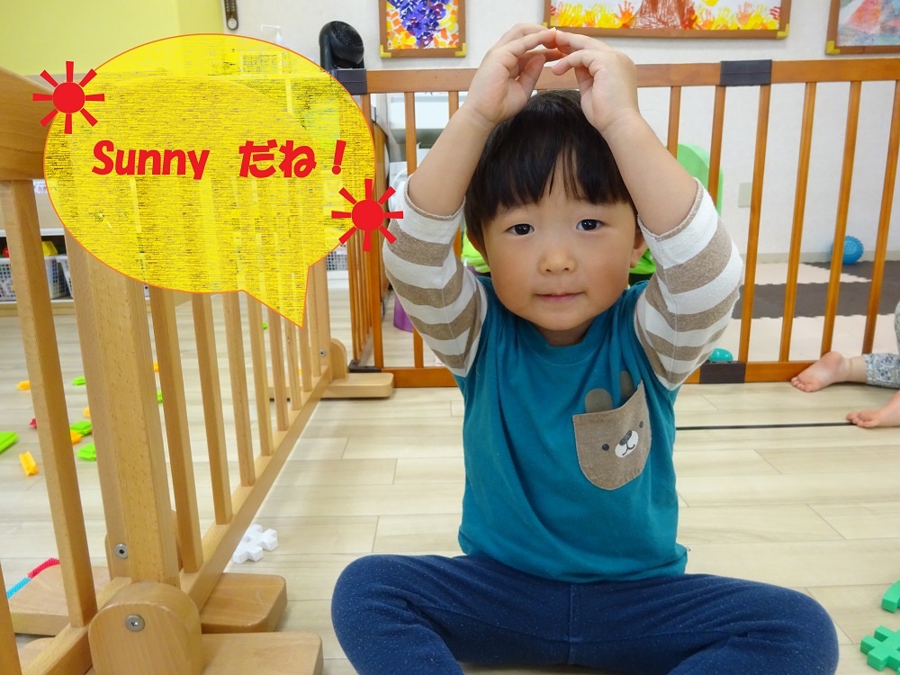 子どもたちとお話をしていると「今日はSunnyだね!」「今日はRainyだからお外には行けないね」などと伝えてくれる姿が良く見られています。