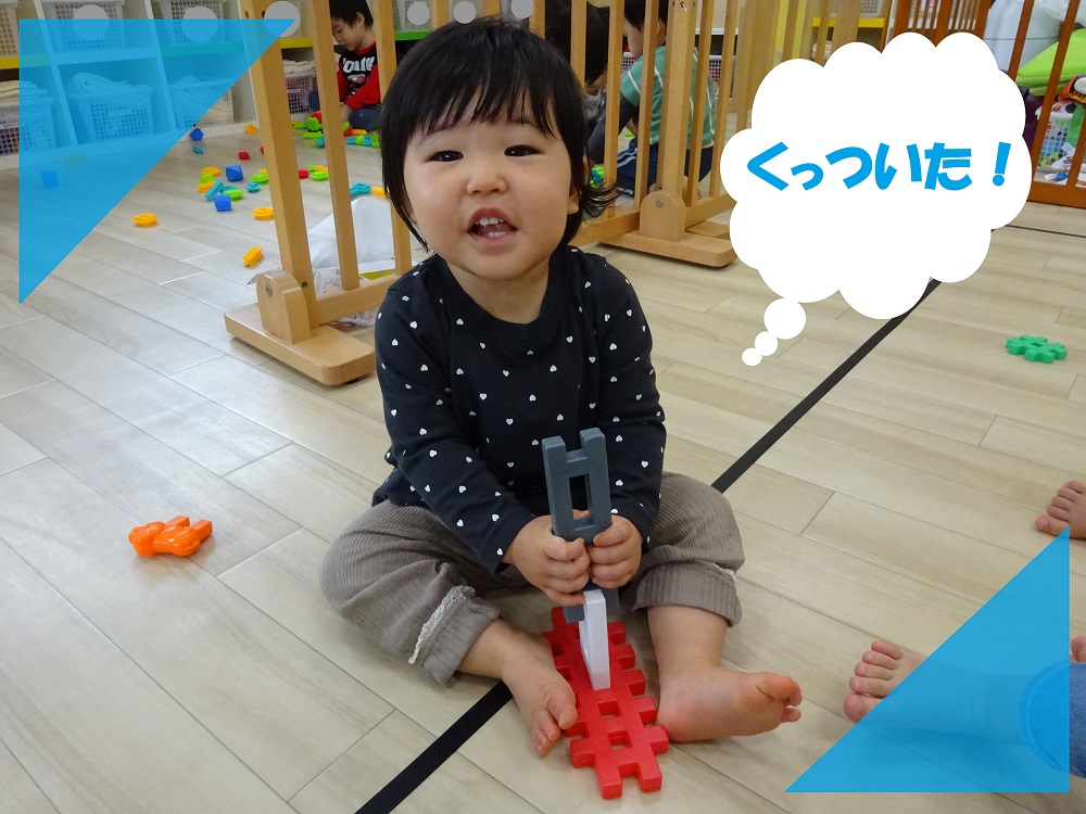 スピカ組(0歳児)さんは、玩具をたくさん集めたり、長く繋げたりして楽しんでいます✨