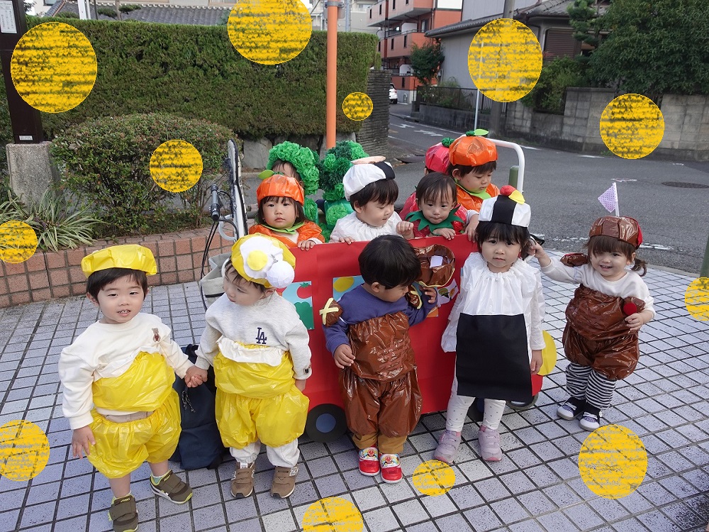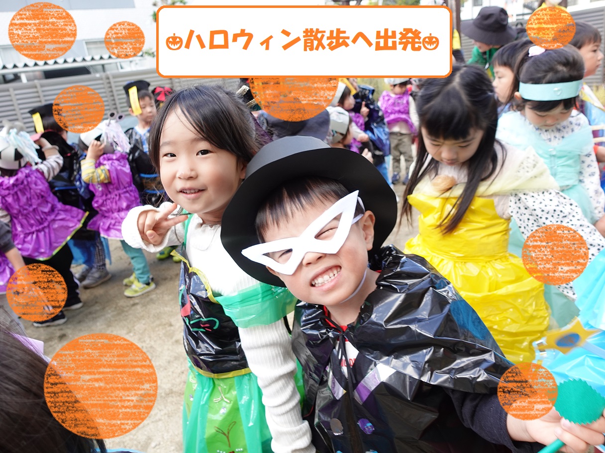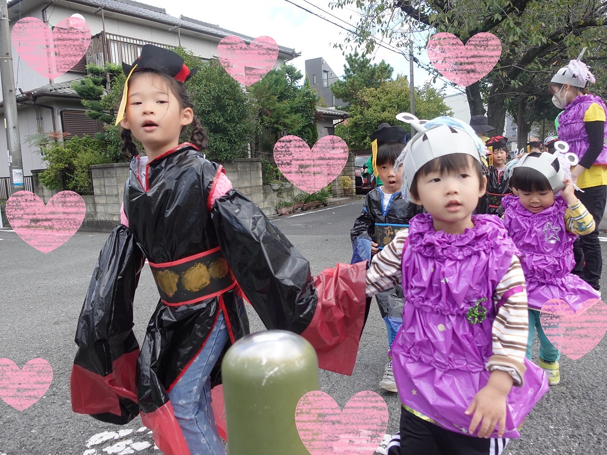 10月28日に各クラスで作成した衣装を着て、異年齢児同士で手をつないでハロウィン散歩へ行きました!