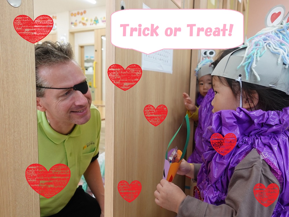 また、ハロウィンイベント後にはトリックオアトリートの合図でお菓子ももらい、大喜びの子どもたちでした。