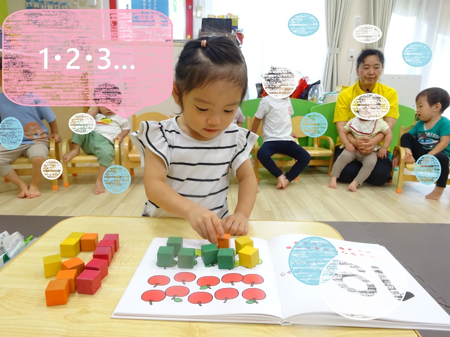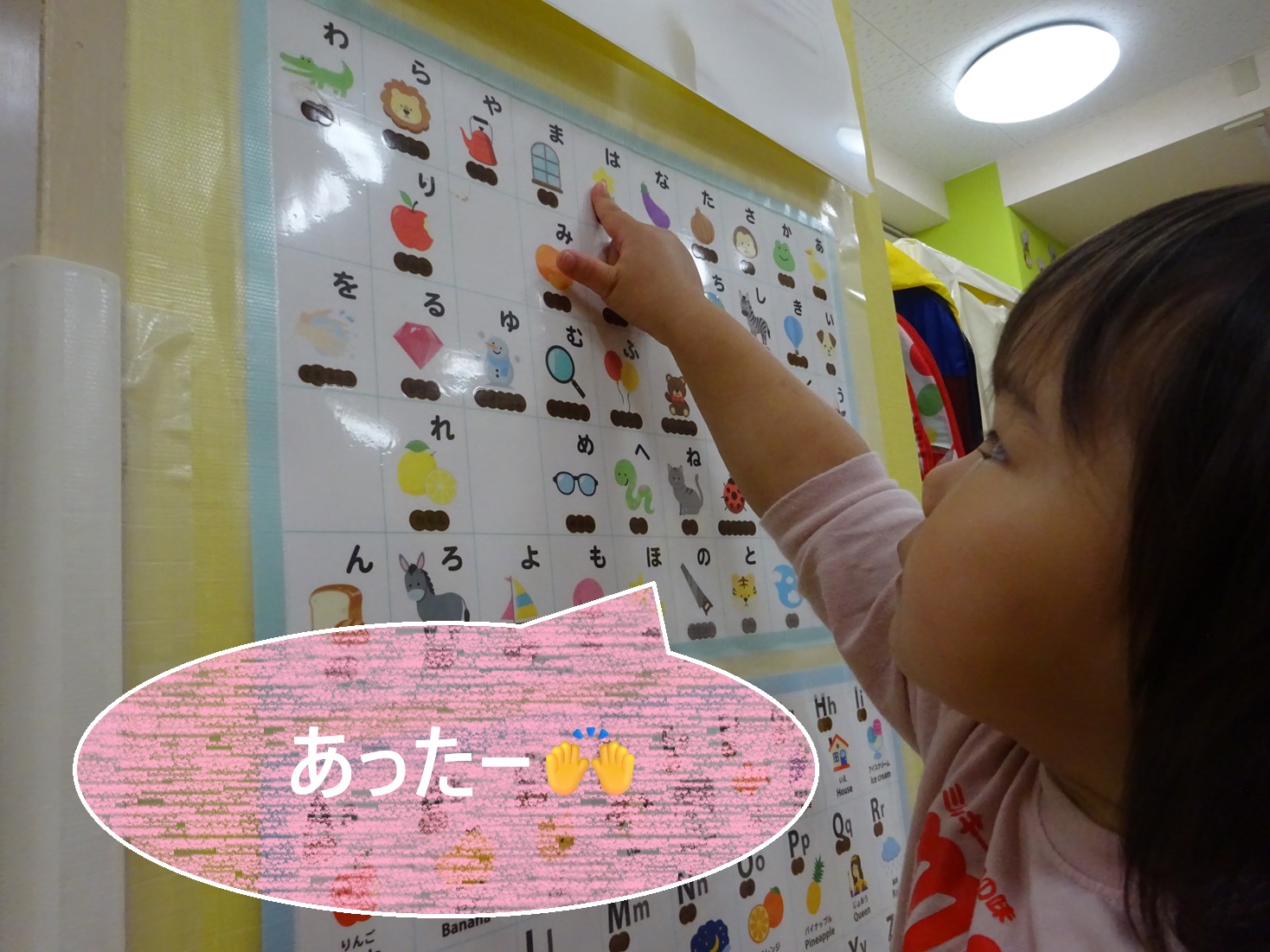 身近な言葉やひらがなを覚え、お友だちや保育士に「おはよう」と挨拶をしたり、お友だちや自分の名前の文字を見つけると指をさして教えてくれるようになりました😊
