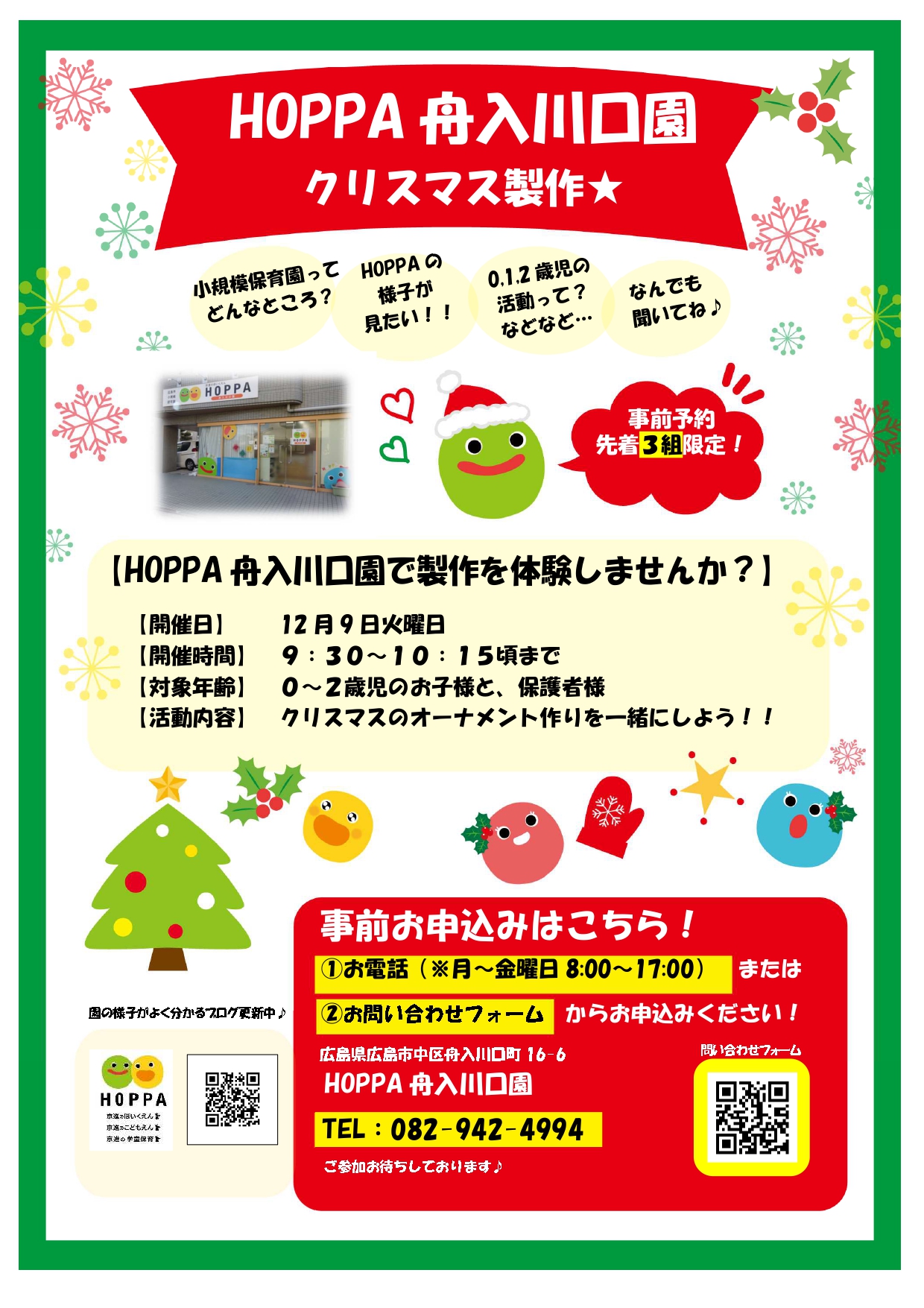 【広島市中区イベント情報】クリスマス製作★【HOPPA舟入川口園】
