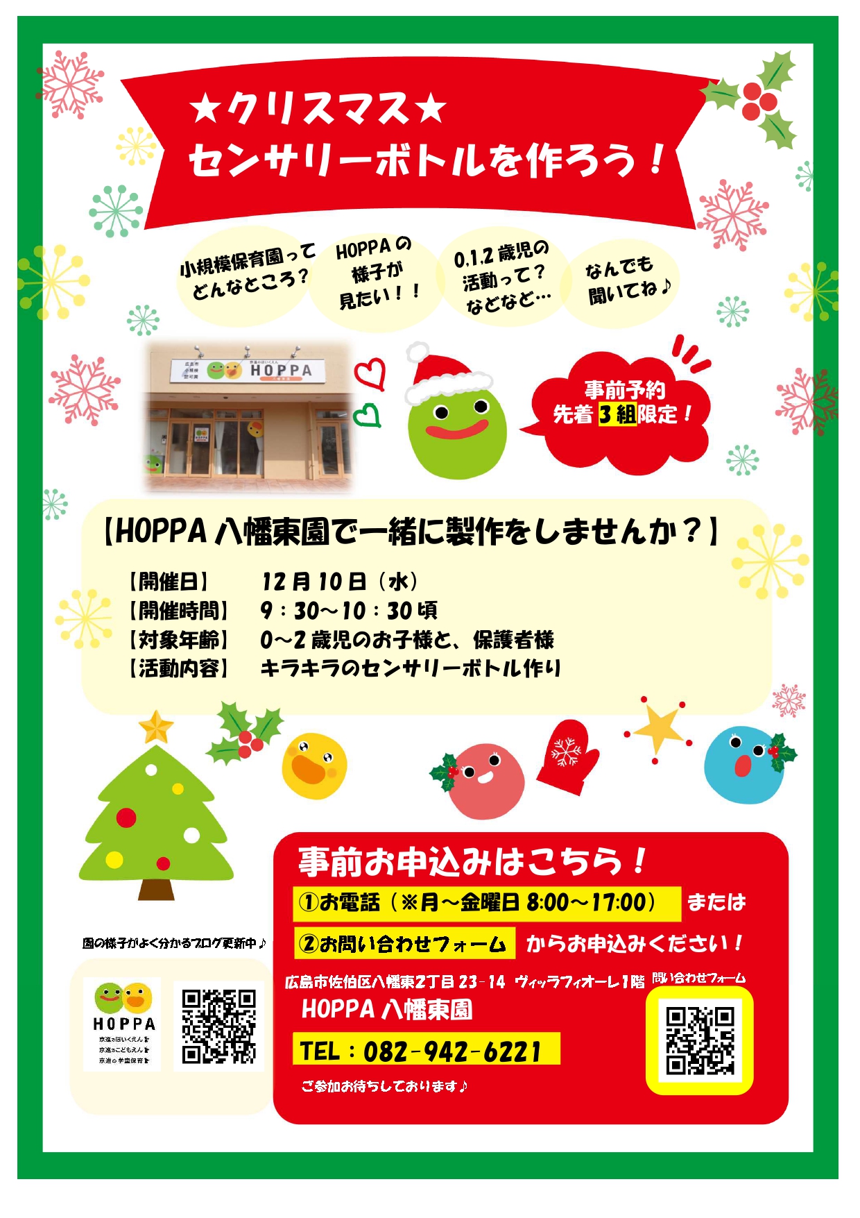 【広島市佐伯区イベント情報】クリスマスセンサリーボトルを作ろう!【HOPPA八幡東園】
