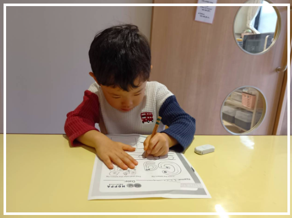 鉛筆でなぞったり、ハロウィンの歌を英語で歌ったり、色々な活動を楽しんでいました。