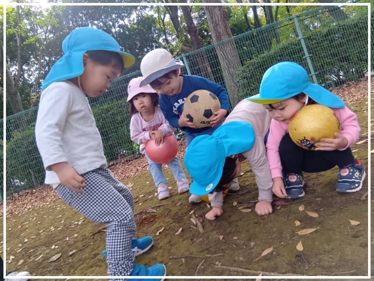 お散歩では、色とりどりの落ち葉に目を輝かせたり、拾ったり、集めたりして秋ならではの自然との触れ合いを楽しんでいます🍂