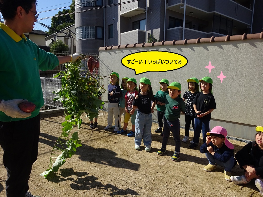 出てきたさつまいもをじっくり見て、取るのが大変なことや、さつまいもがこんな風にできることなど、ひとりひとりがしっかり学んでいました。