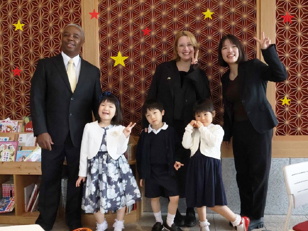 English teacherが園児と一体となって英語のお歌を歌ったり、絵本の読み聞かせをしたりして、英語を聞き話す素地を作るだけでなく異国文化への関心を育てます。