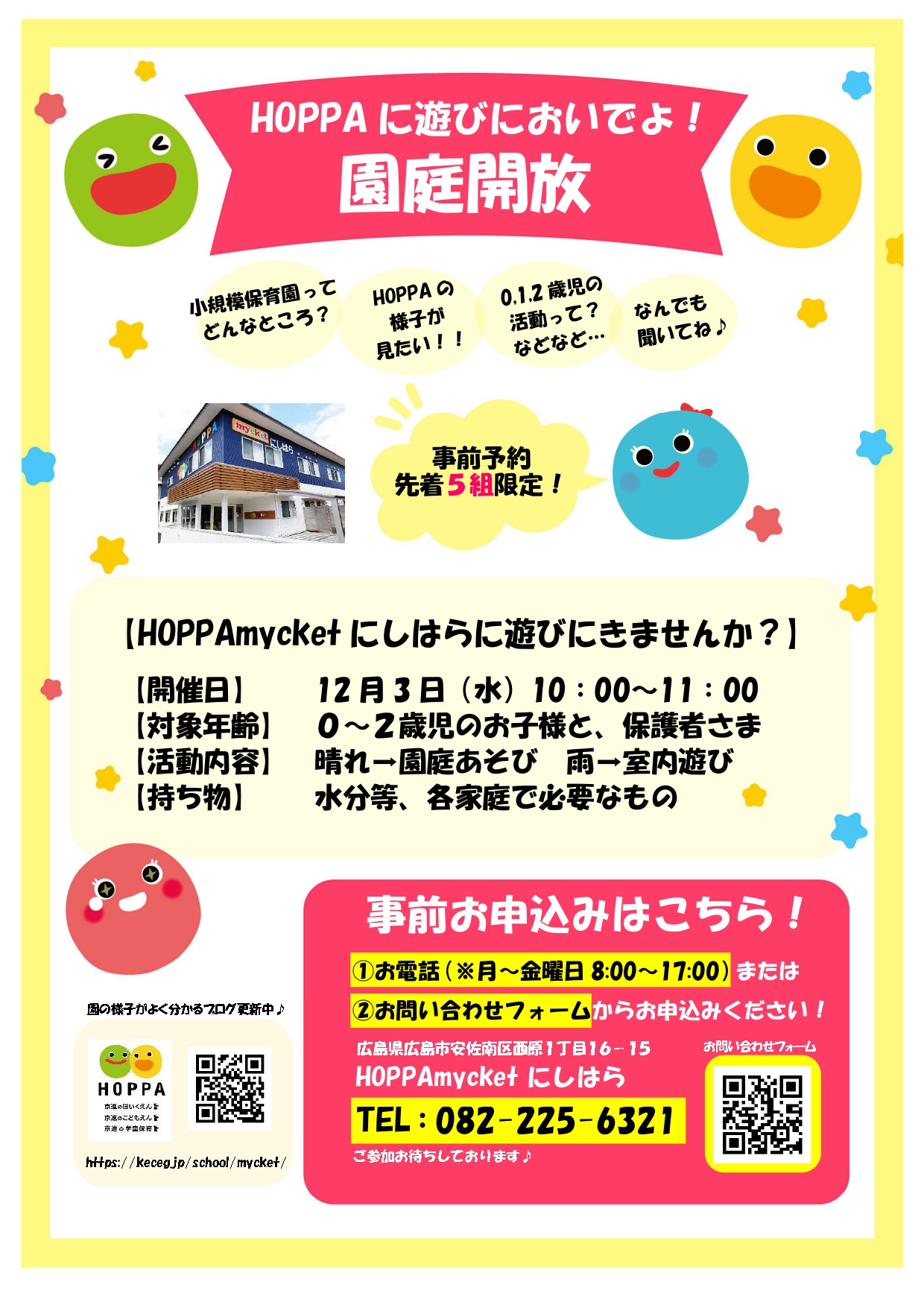 ★HOPPAmycketにしはらでいっしょに遊ぼう!➀園庭開放★