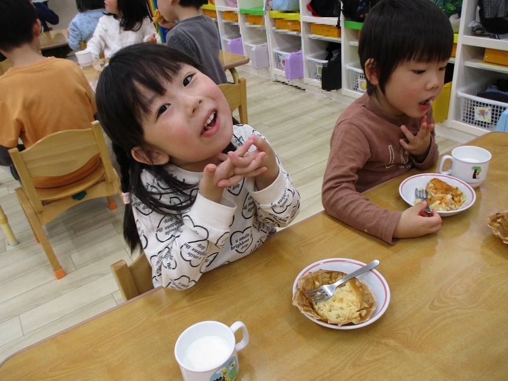 「トマトとチーズのマフィン」は絶品で普段トマトが食べられないお友だちも「美味しい!!」とペロリと平らげていました!