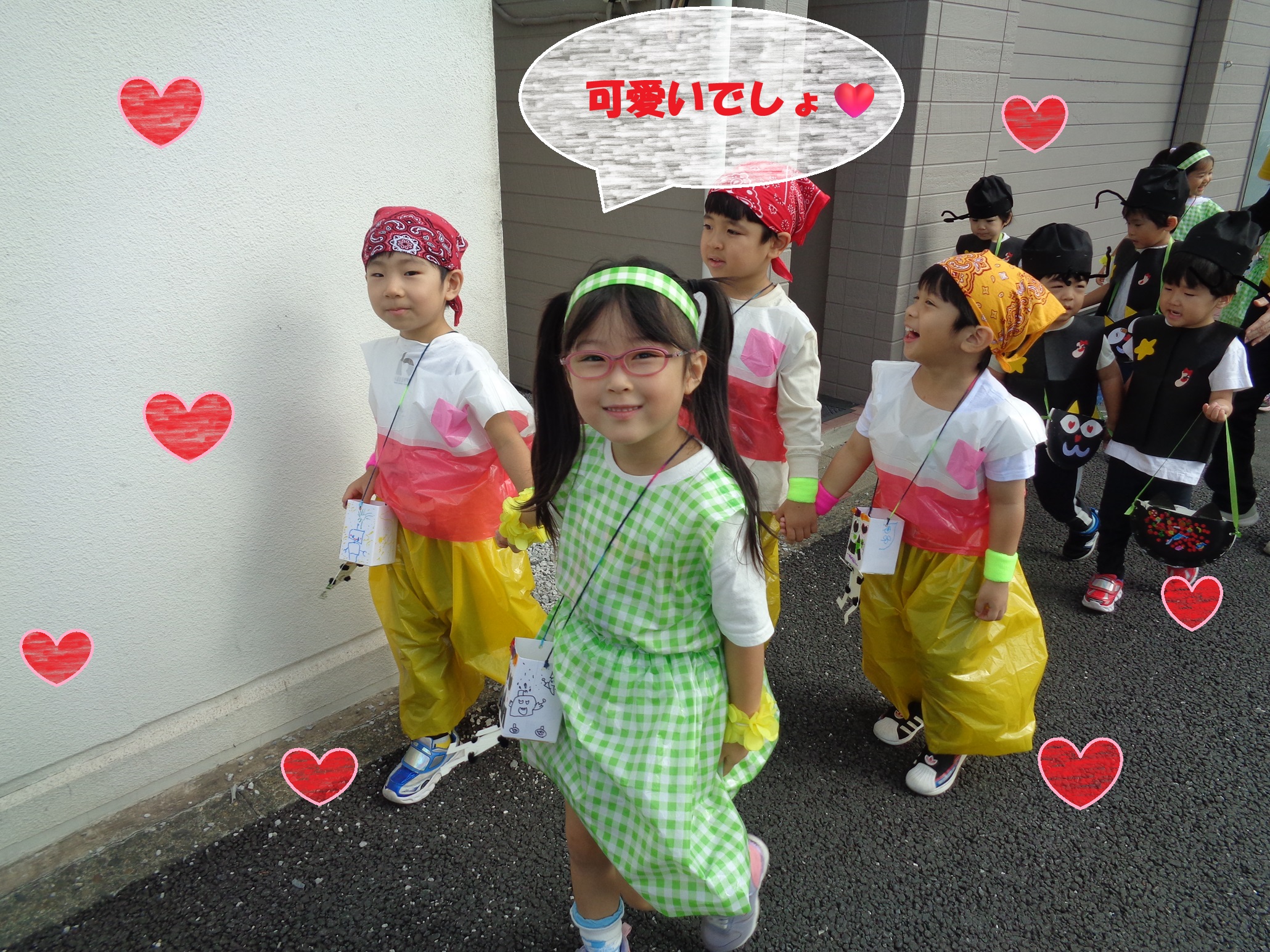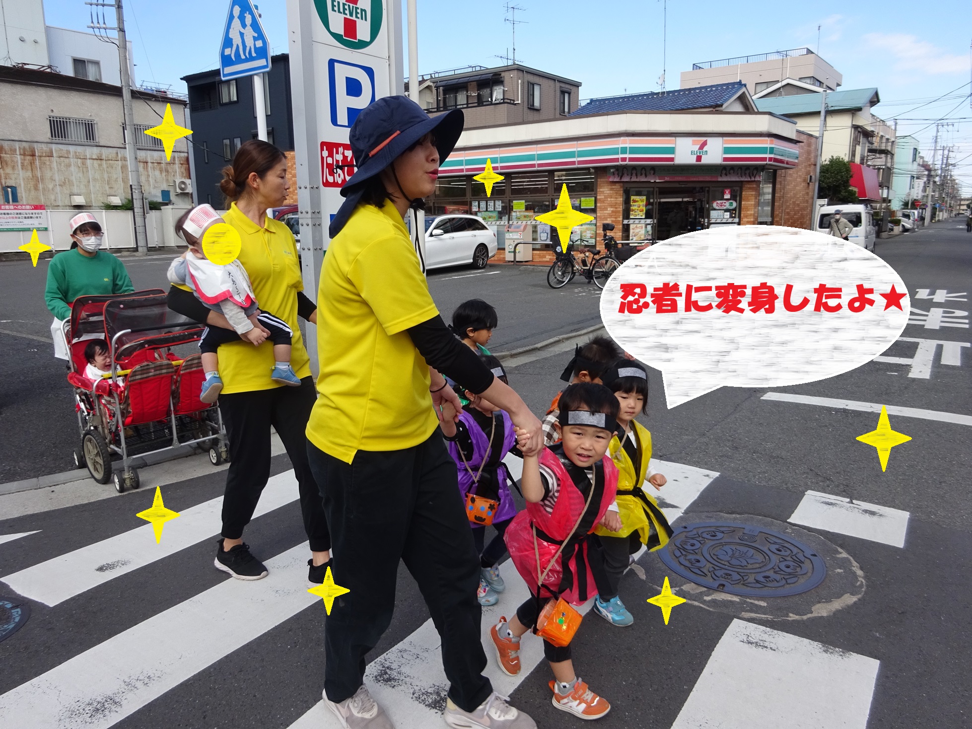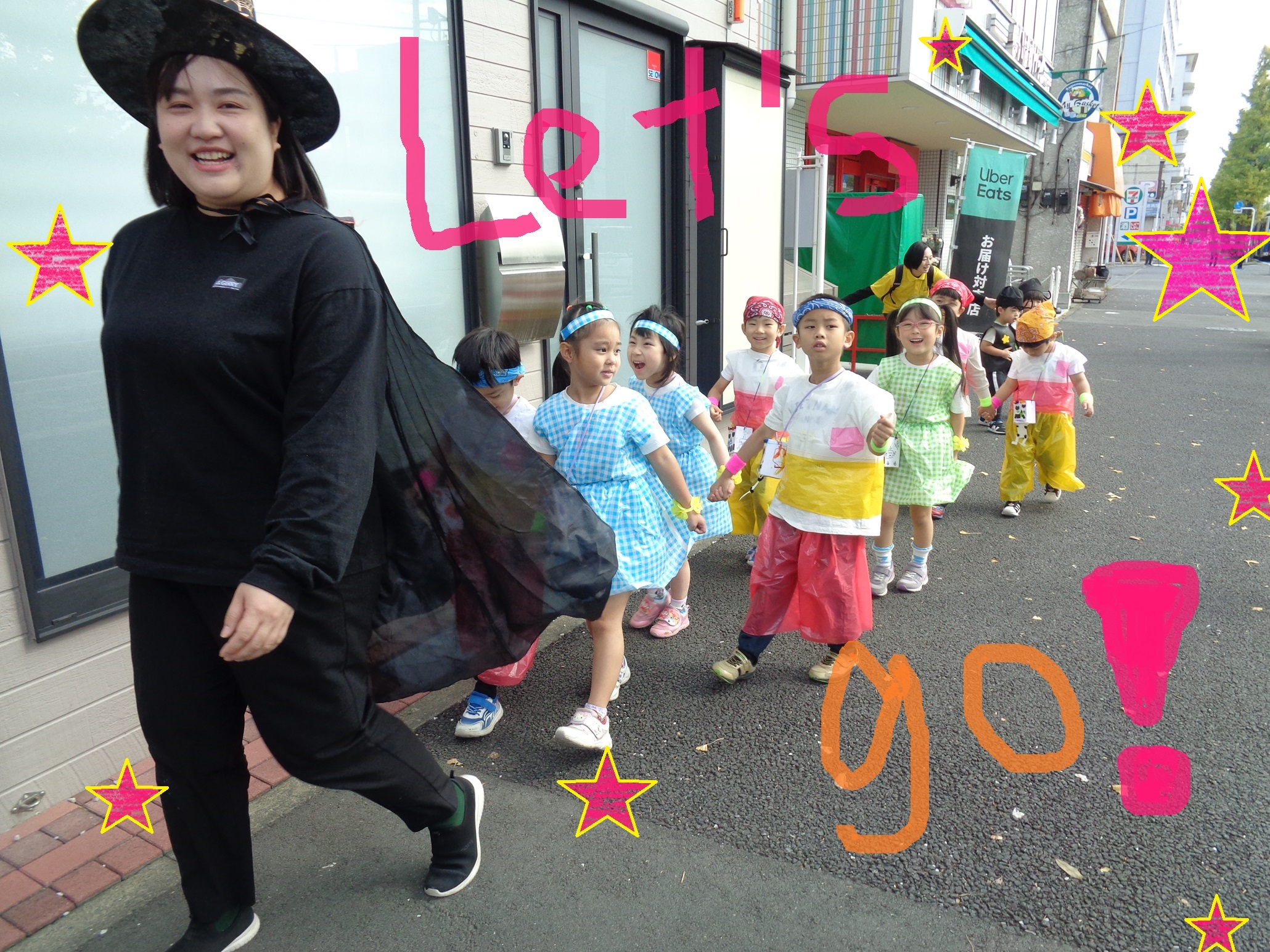 まずは10月の後半、園児さんたちみんなで仮装をしてハロウィン散歩に出かけました。