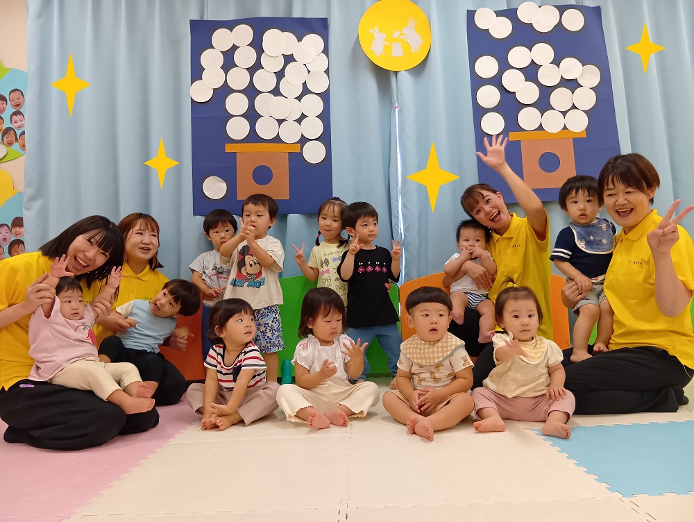 スピカ組(0歳児)はてんとう虫、ベガ組(1歳児)はあり、シリウス組(2歳児)は蝶々です!