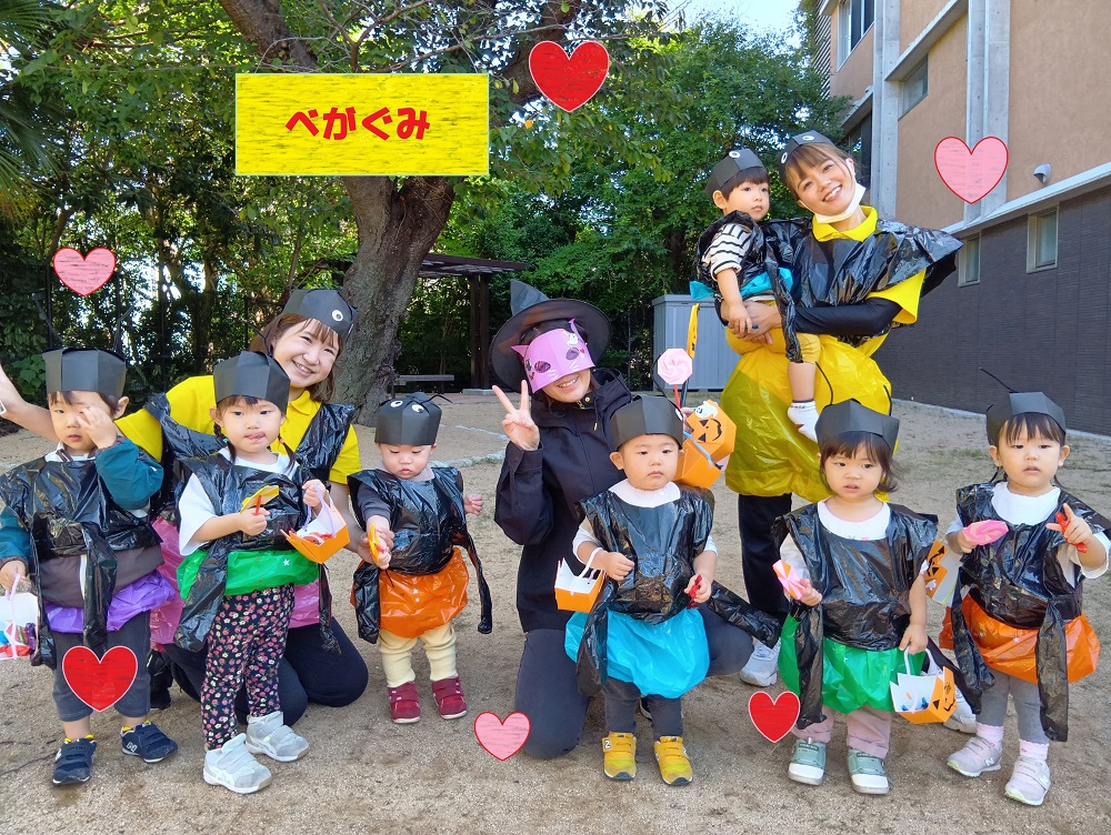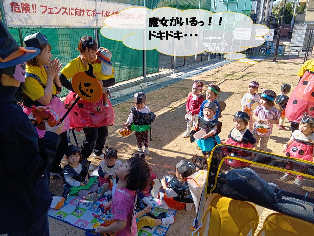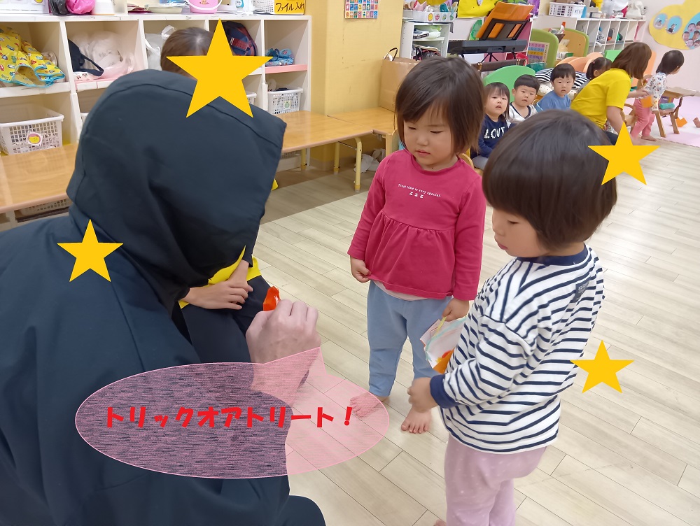 1カ月の間ハロウィンについてのお話を聞いたり、絵本を見たりすることで興味をもって楽しく過ごすことができました!