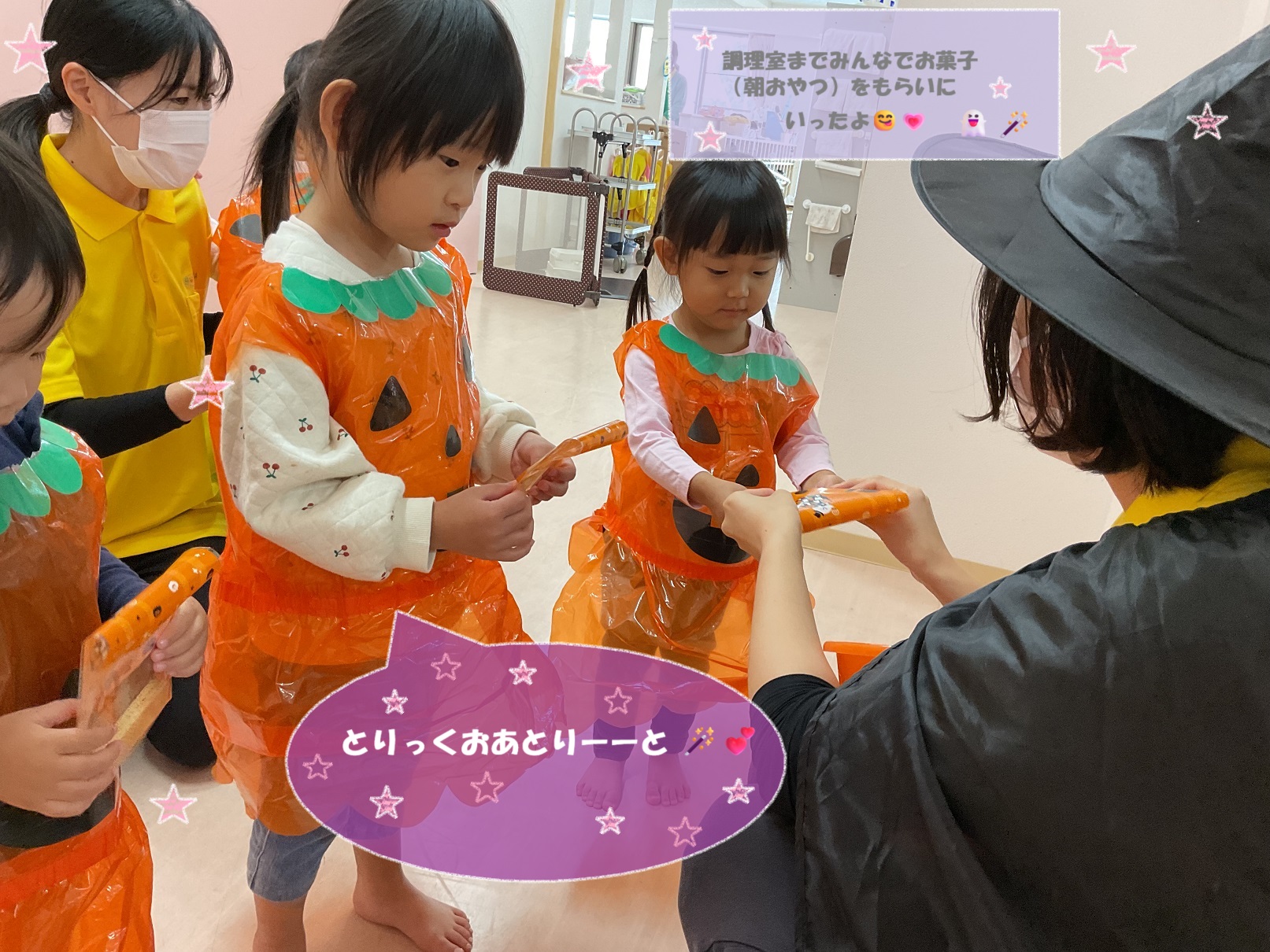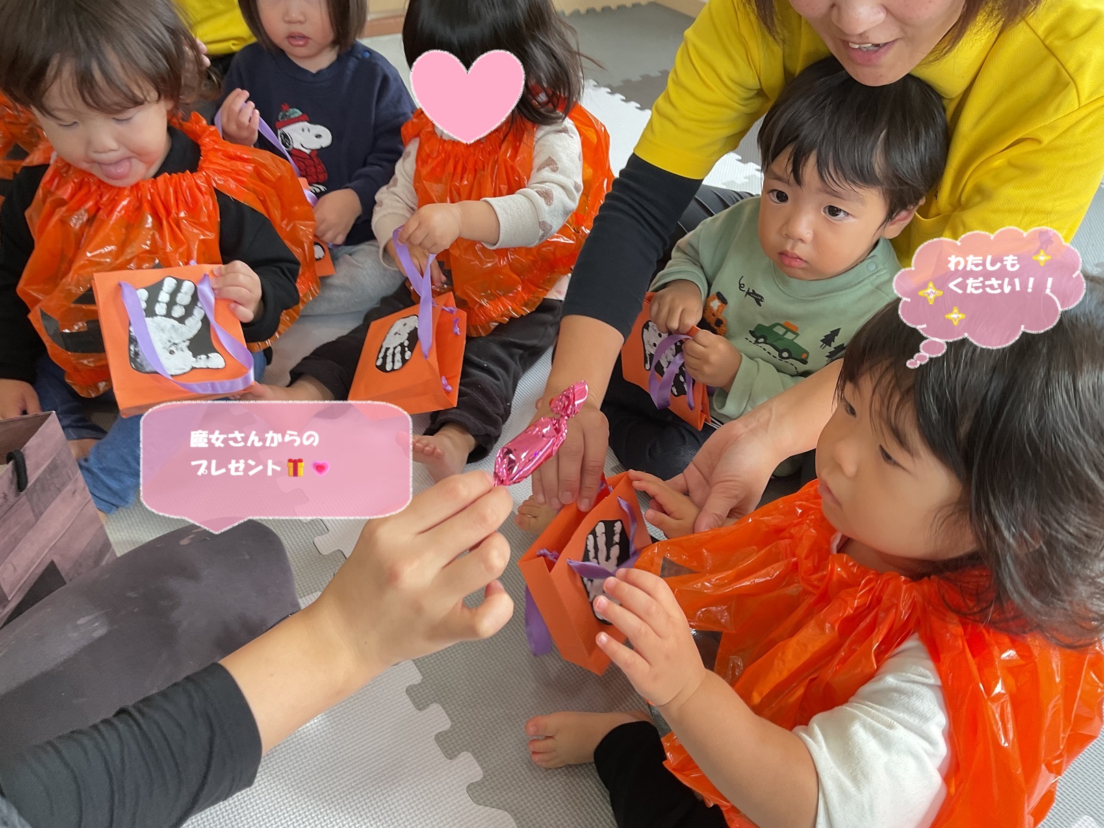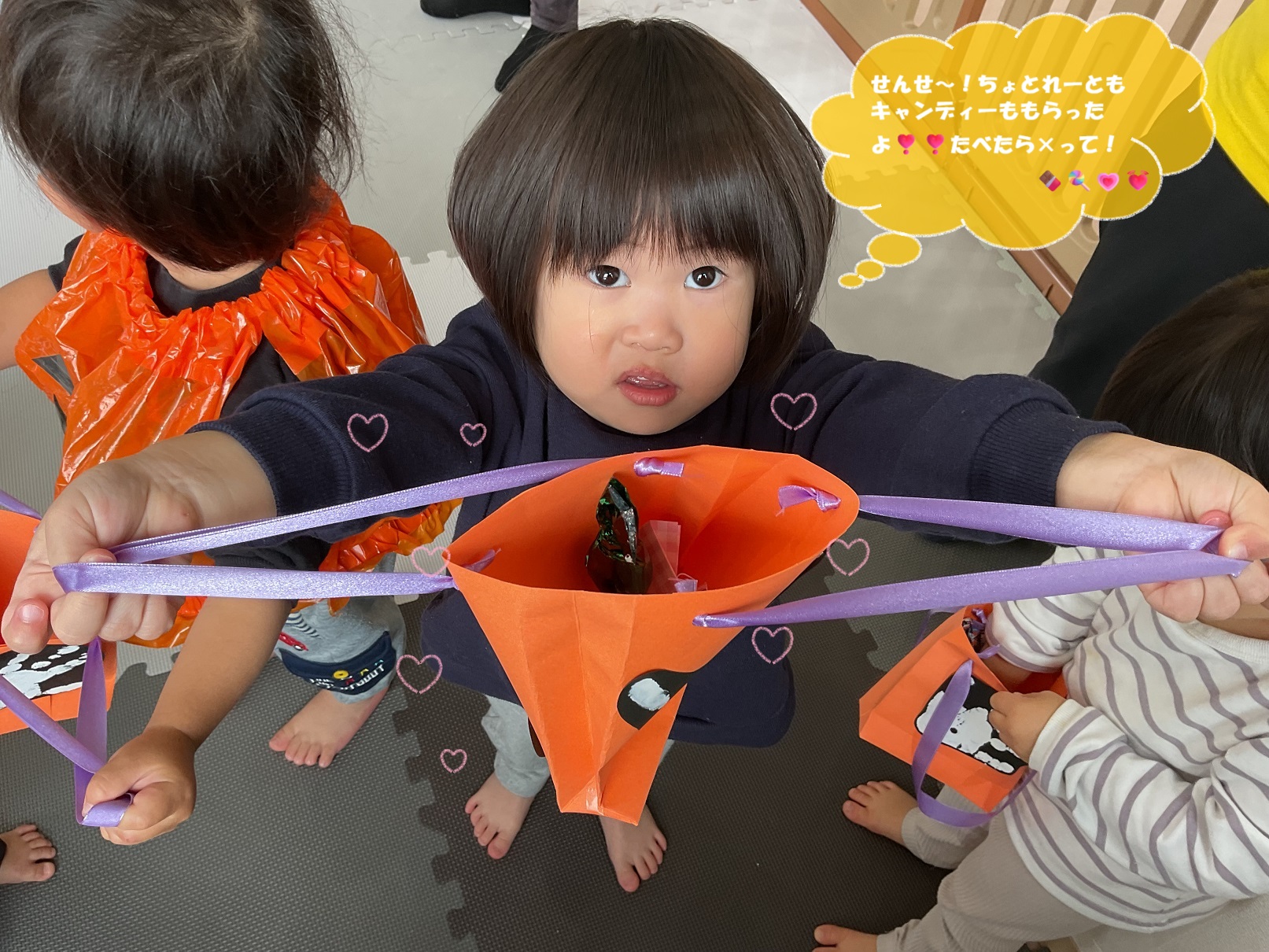 その後は、ベガ組(1歳児クラス)はお部屋で魔女さんからお菓子をもらいました🍫🍭💗