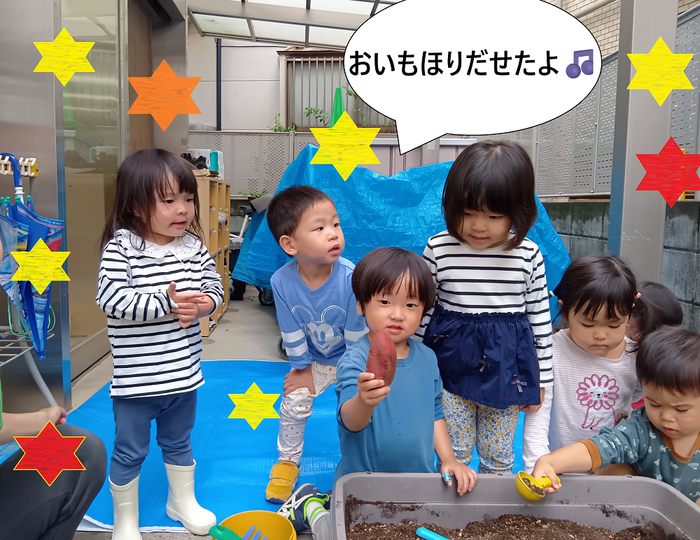 みんなでお芋を掘り出してとても楽しそうですね💖