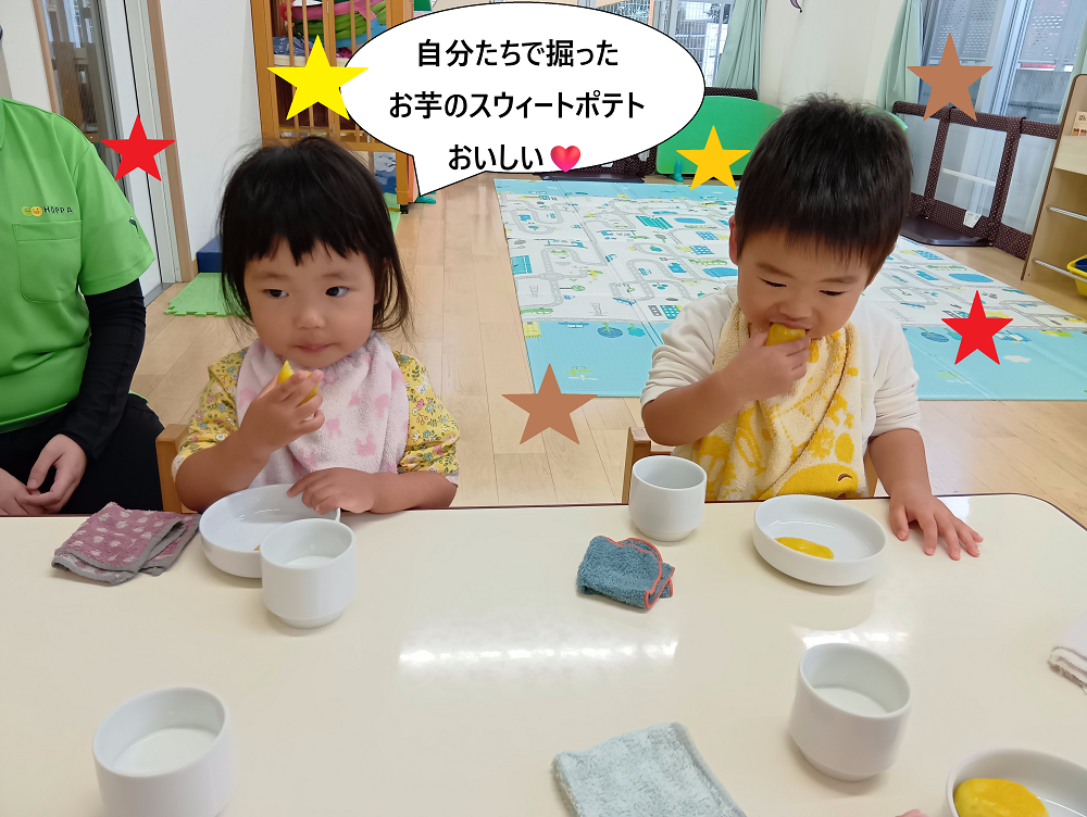 自分たちで掘ったお芋のスウィートポテトは格段と美味しかったようですね😤