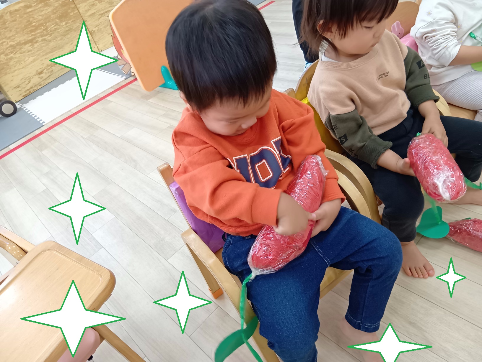 柔らかい感触や温かさ、ほんのり甘いにおいなど五感をつかった体験ができ満足そうでした🥰