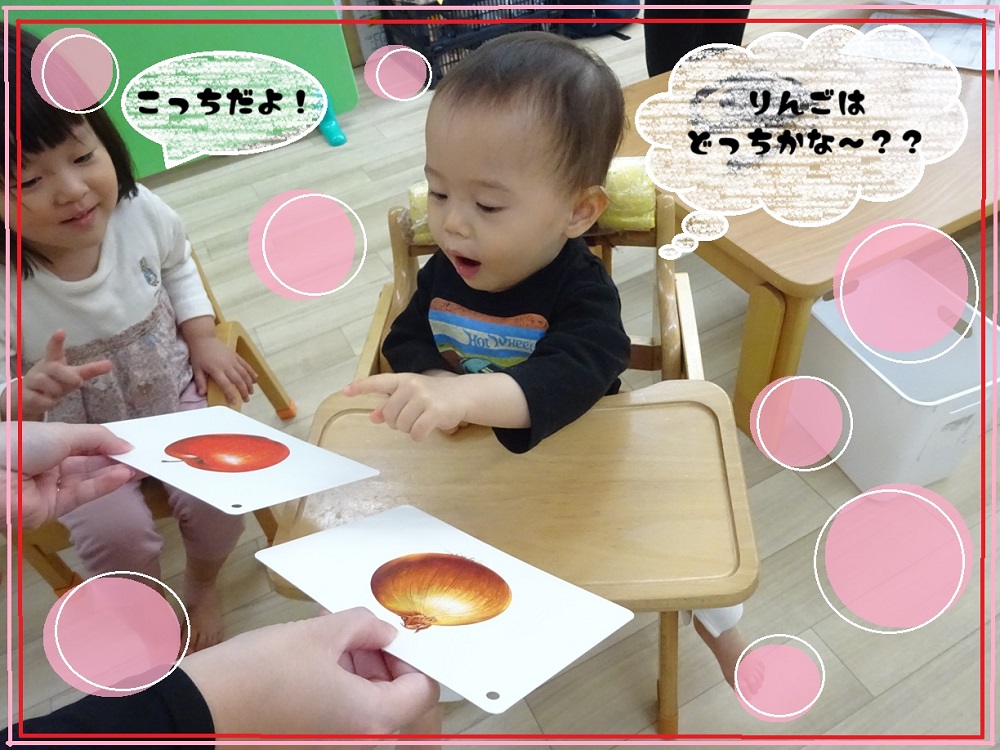 知育timeではくだものやさいカードをじっくりと見てわくわく!