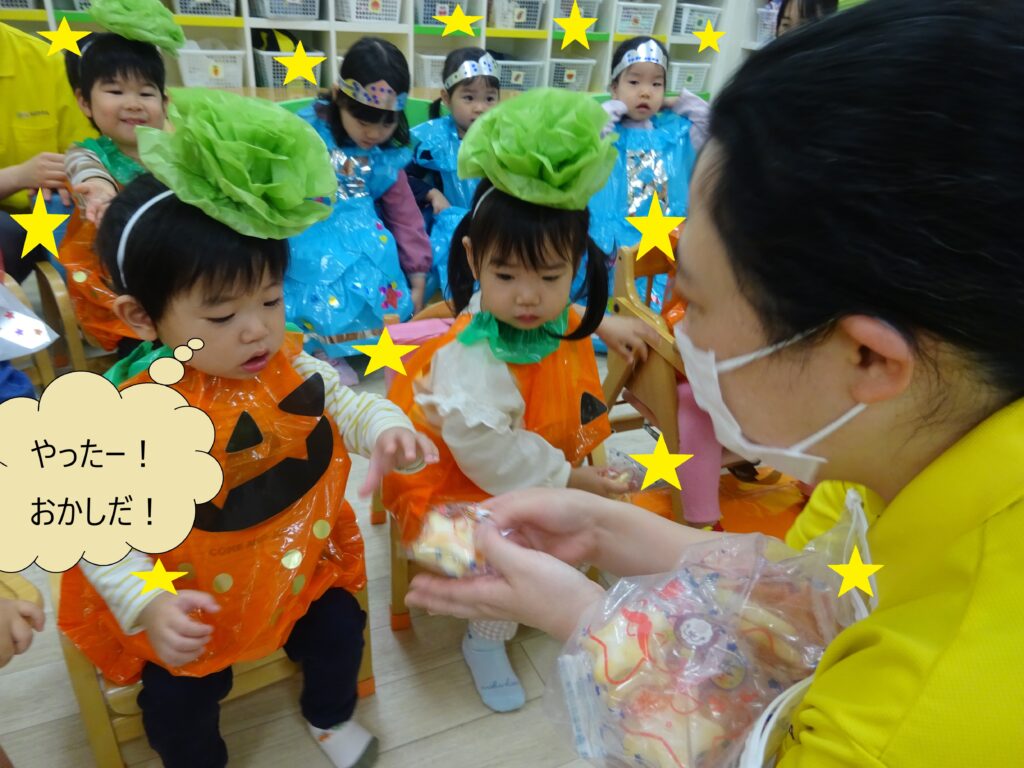 ベガ組(1歳児)はジャック・オ・ランタン、シリウス組(2歳児)はプリンス&プリンセスに仮装することに決まり、ハロウィンを待ち遠しくしている子どもたち!