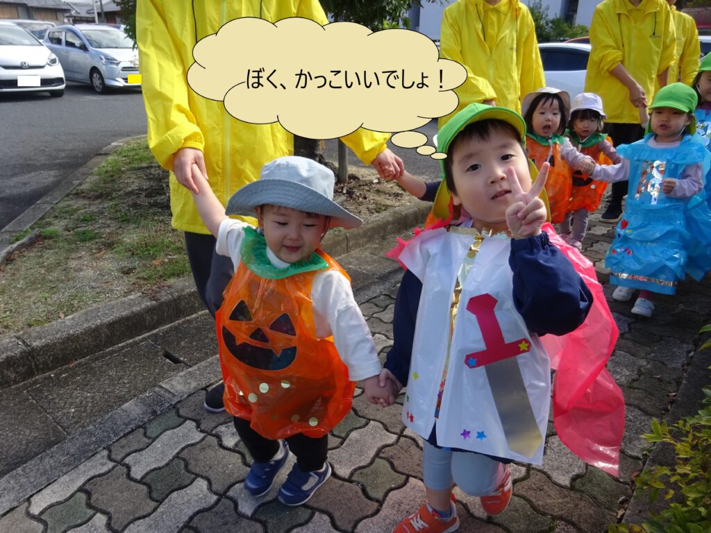 衣装を着る時からいきいきとしている子どももいれば、緊張している子どももいましたが、いざハロウィン散歩が始まったときは、笑顔で出かける姿がたくさん見られていました。
