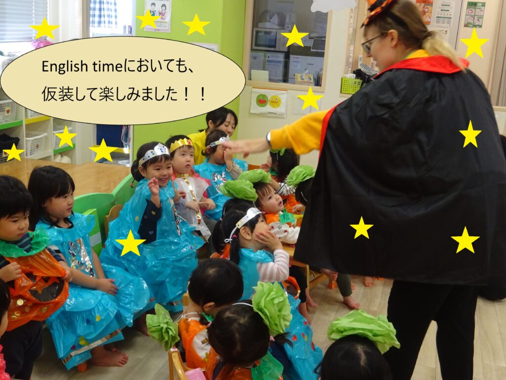それから、HOPPA草津若竹園では、毎週English timeを実施しておりますが、ハロウィンに因み、10月最後のレッスンの日には、衣装を着て参加しました。