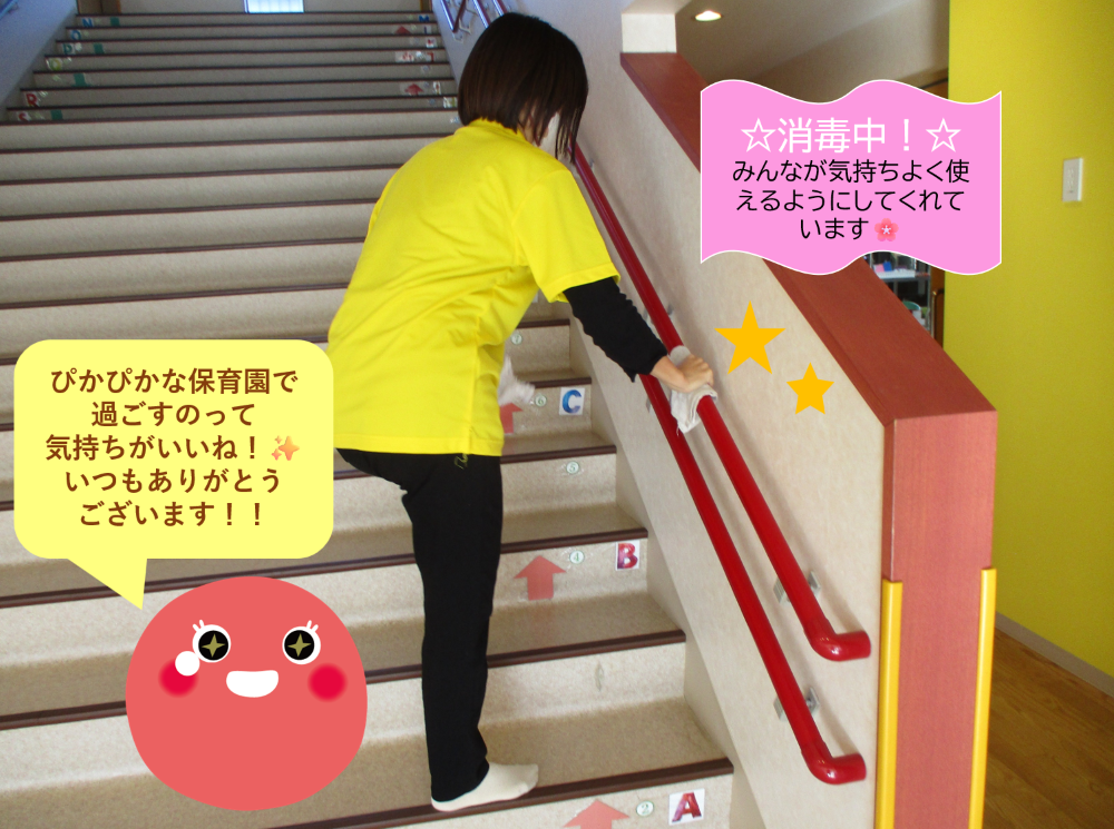 HOPPAライフガーデンでは、職員が朝から子どもたちの手の届く場所や扉の取手、ロッカー、毎日使う玩具などを消毒しています!