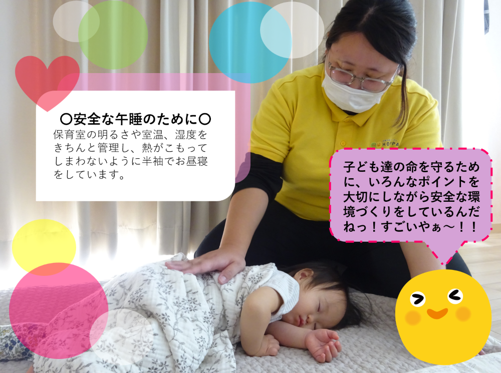 大切な子どもたちの健康を守るための取り組みにプラスして、午睡時の安全対策をご紹介してきました!😊