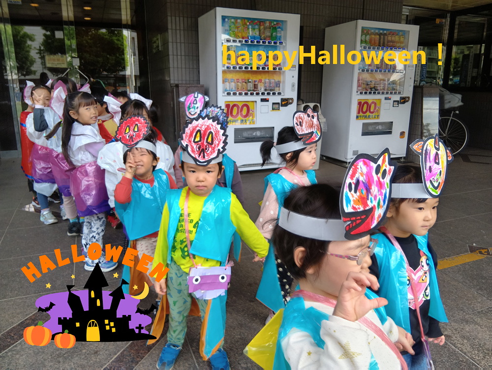 ハロウィン散歩では手作りの衣装を着て出発~!!